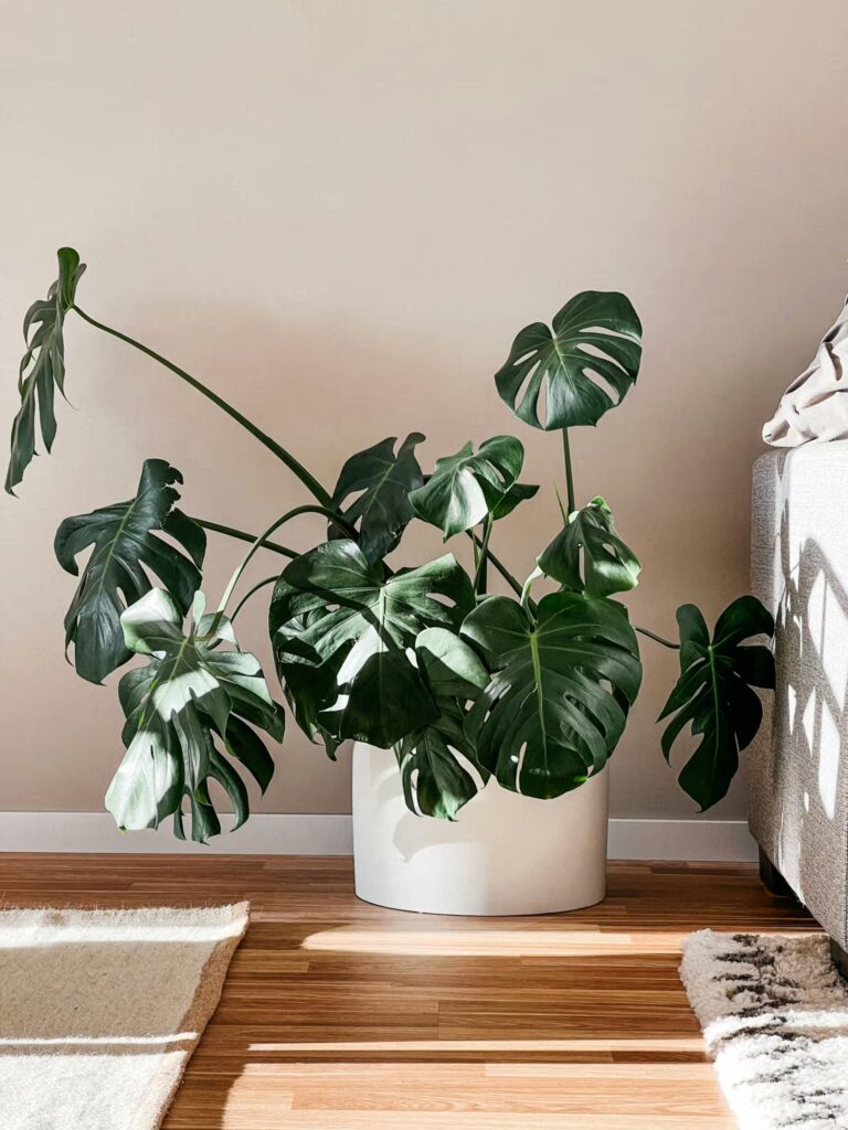 • Monstera Deliciosa: Ícone absoluto das folhagens grandes e dramáticas, é fácil de cuidar e extremamente fotogênica.