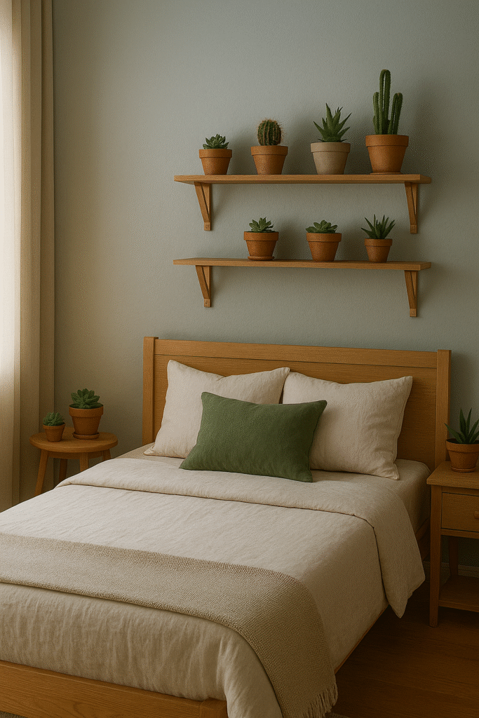 - Para um quarto moderno ou minimalista: Suculentas e Cactos são ideais para vasos simples e modernos.
