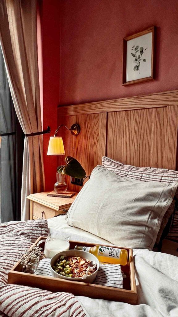 Além disso, essa estética é perfeita para quem deseja criar um quarto marcante e romântico, mas sem abrir mão da modernidade. Por isso, neste guia completo, você vai descobrir como montar a decoração cherry bedroom, quais cores usar, como combinar os elementos e até onde encontrar peças lindas para reproduzir o visual em casa.